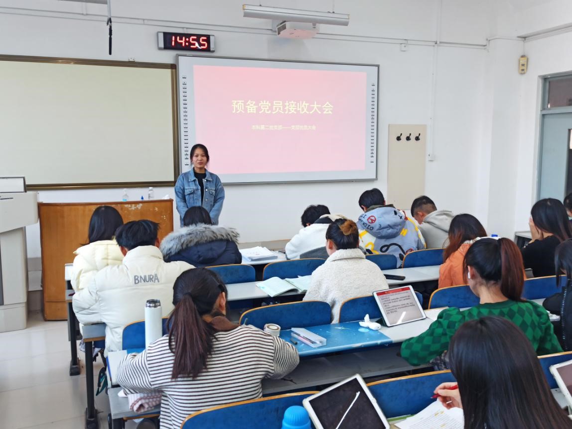 点击:11月18日,成人在线 本科第二党支部在S1-213召开预备党员接收会议,讨论接收李佳迎等26位同志为中共预备党员的有关问题。本科第二党支部全体成员参加此次会议。