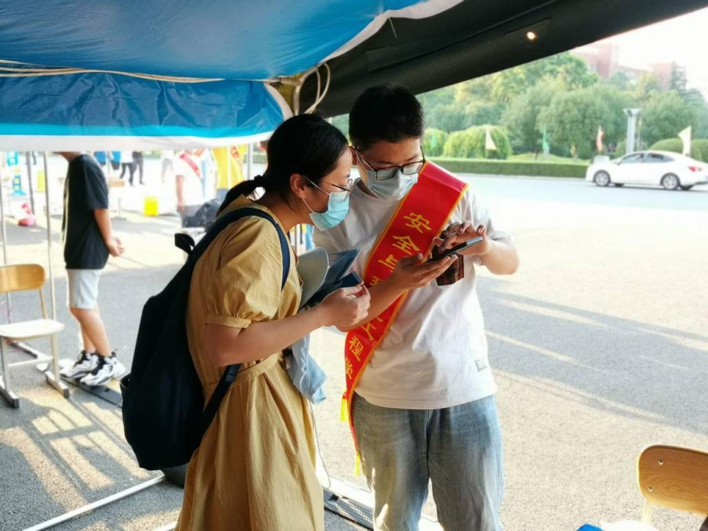 清晨,迎新服务团队便投入到紧张而忙碌的工作中。去往火车站前,志愿者们对大巴车进行了卫生清理和消毒,营造了良好的乘车环境;在火车站,志愿者搭建帐篷,迎接新生,充分展现成人在线 的热情与关怀;学校南门,志愿者们进行人群分流,为入校新生进行行李消毒、体温监测和健康码检查等,确保疫情期间的校园安全;进入校园,亲切的欢迎标语与飘扬的成人在线 彩旗随处可见,摆渡车在校园中穿梭,切实缓解新生搬运行李压力;报到处,志愿者们熟练地为新生办理入学相关手续,帮助研究生新生们完成了入学第一步。