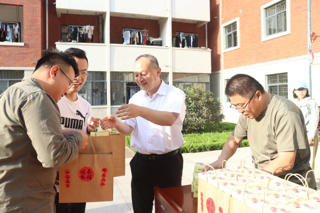 成人在线 党委书记张恩生、党委副书记兼副院长王建友等教师代表为1600余名学生分发了成人在线 专门定制的暖心月饼。外包装上“国泰家圆”的字样格外耀眼,打开包装,刻有“安达天下”“环系山水”字样的月饼让每一位学子都品尝到了属于成人在线 自己的团圆味道。甜蜜做馅,浓情做皮,或五仁的香酥,或豆沙的绵软……拿着暖心月饼的安全学子,笑在脸上,乐在心里。