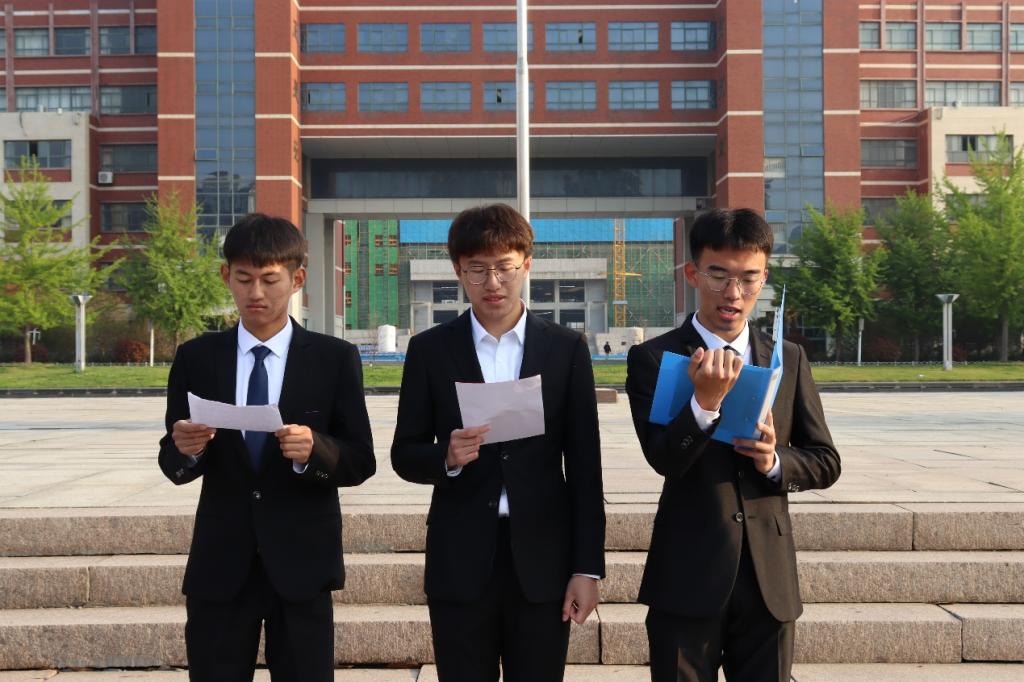 升旗结束后,王旭顾立国付修齐桂真潘立珂五位学生代表分别进行了家书朗读。每一篇家书都满含着深沉的感情,引起同学们的共鸣和反思