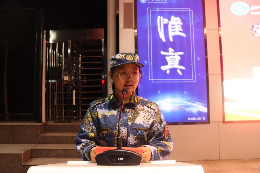 本科新生代表周常蕾代表全体2021级新生,向为成人在线 领导、老师以及学长学姐表示最衷心的感谢,她代表新生郑重承诺:会传承红脉、坚定自信,深入了解山科历史底蕴;充满好奇,挑战未知,始终保持旺盛的探索能力;治学修身,勇于追梦,立志成为高素质人才;崇德、慧智、慕美、尚体、颂劳,成为全面发展的大学生。