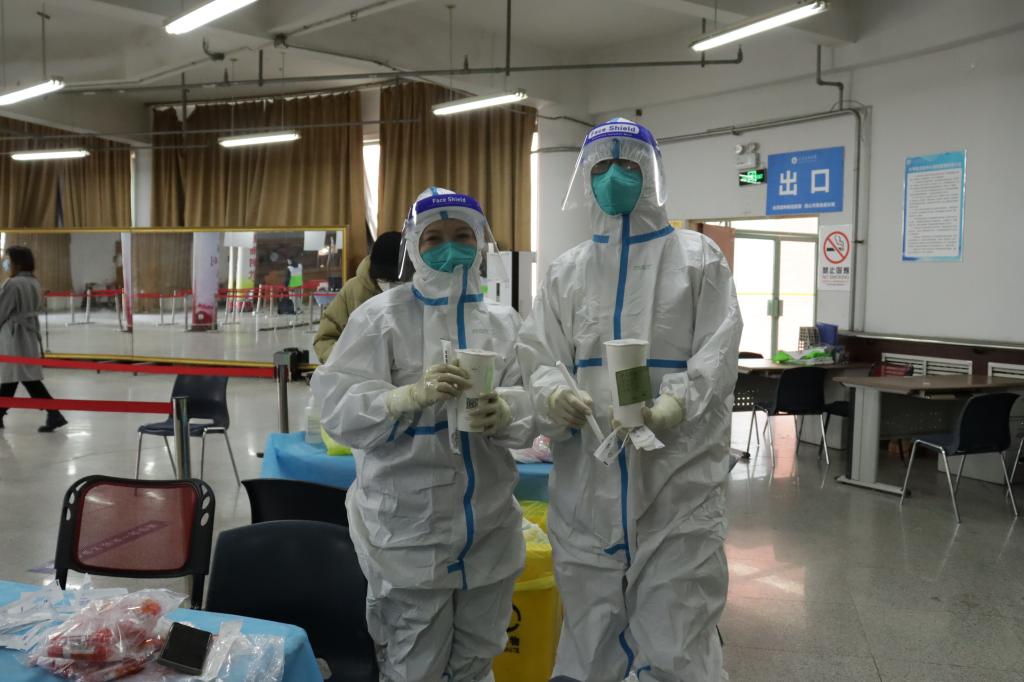 春寒料峭,细雨淋漓。紧张有序的核酸采集工作已经进行到第四轮,雨越下越密,让身穿密不透风的防护服,口戴厚厚的N95口罩的医护人员呼吸更加困难。一位好心的同学把伞递给正在维持现场秩序的“大白”,但他却说:“来回跑动打伞不方便,坚持下就结束了!”说完又奔向队伍后方……看到这一幕,一些同学提议咱们是不是可以给志愿者做点什么。