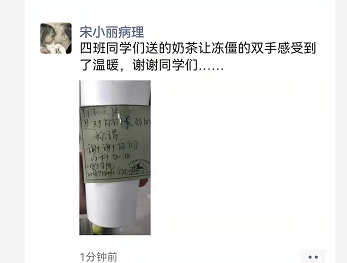 “同学们送的奶茶让冻僵的双手感受到了温暖,谢谢同学们……”黄岛中医院的宋医生在自己的朋友圈里这样写道。核酸检测点的医务工作者说道:“我喝过那么多奶茶,还是这样的爱心奶茶最好喝,简直暖到心坎儿里了。”