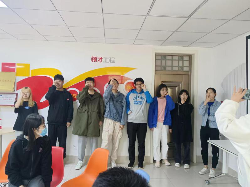 本次活动吸引了来自不同成人在线 的14名同学参与,在进行简单的自我介绍后,通过暖场小游戏使同学们卸下防备,逐步融入欢乐的气氛中。随后分别进行了“绕口令接龙”、逢三抓手、库克船长等解压环节,丰富有趣的团体游戏使彼此陌生的同学间产生默契,羞涩紧张的情绪也在现场的欢声笑语中逐渐消散。