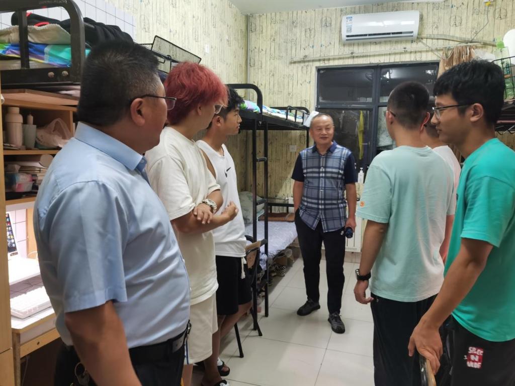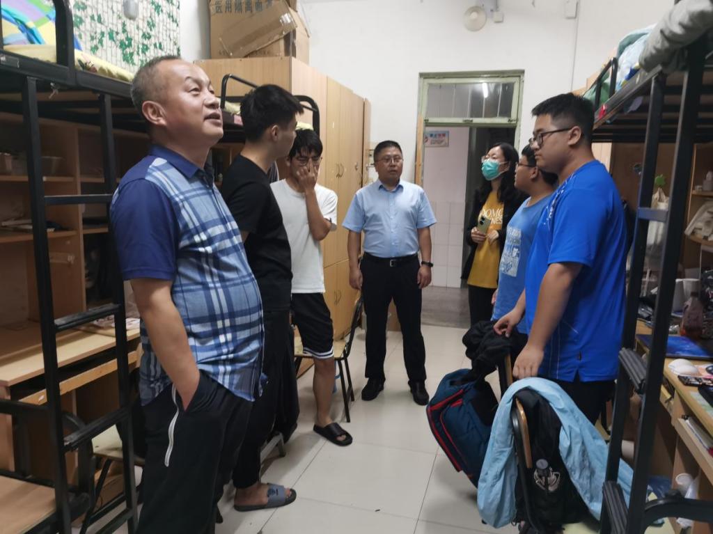 为进一步做好新型冠状肺炎疫情常态化防控工作,并更好了解学生返校情况确保新学期学生工作顺利进行8月29日晚成人在线 党委书记张恩生、党委副书记兼副院长王建友、团委书记潘刚及全体辅导员深入学生宿舍对返校同学进行探望与慰问。
