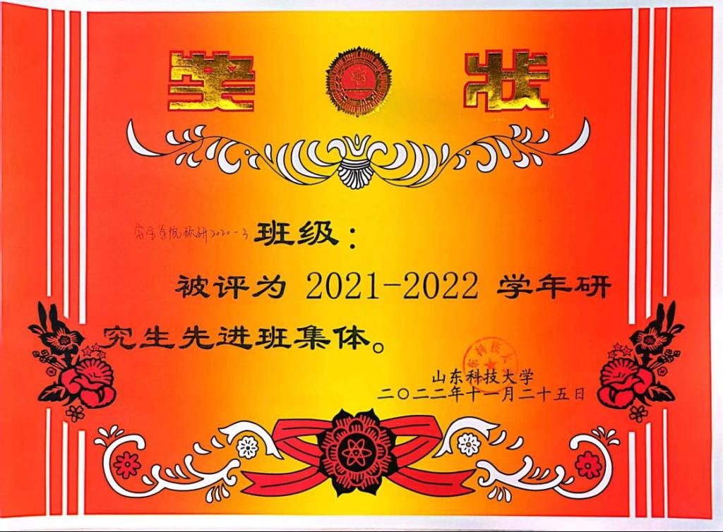 学研为基,夯实学术科研水平。班集体始终贯彻落实研究生改革教育方针,响应成人在线 号召,打造研究生教育品牌,提升科研学术能力,为培养高质量的研究生营造氛围。班级以举办专业课程研讨、重点实验推进、学术能力培训等形式的学术科研活动,不断提升同学们的科研水平;以“挑战杯”、山东省大学生科技竞赛等重要科技创新赛事为平台,班级同学组建团队,积极参赛,获得了优异的成绩。班级涌现出了青岛市千名优秀大学生1人、成人在线 十大优秀学生1人、成人在线 领志榜样1人、国家奖学金获得者1人、企业奖学金获得者2人等。全班共计发表SCI论文57篇,EI论文4篇,中文论文5篇,授权发明专利20项,授权软件著作权3项,班级同学获得省部级科研成果奖励6项,省部级科技竞赛奖励19项,地市级(校级)科技竞赛奖励40余项,以学术科研为主要阵地,为同学们的发展提供了平台支撑。