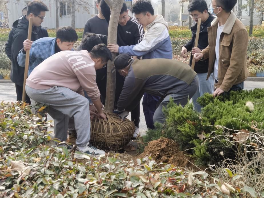 随后,在后勤处绿化科刁老师对于紫薇树生长环境要求、植树方法以及植树流程的悉心讲解下,同学们拿起铁锹倾情投入到植树活动中,几人一组相互配合,挥锹铲土、扶苗培土、围堰浇水,顺利种下饱含感恩之情的紫薇树。温暖春风里,新栽植的小树在道路上笔直挺立,萌发出盎然生机,大家以最诚的心表达自己最真的情。活动最后,成人在线 领导以及班级全体成员在横幅上签下自己的名字,并与紫薇树合影留念。