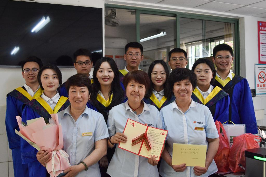 莘莘学子心,浓浓离别情。6月8日,成人在线 硕研20级2班10余名毕业生代表,在即将离校之际,带着精心准备的祝福、鲜花和礼物,为辛劳已久的宿管阿姨和宿管大爷送去了特别的问候。
