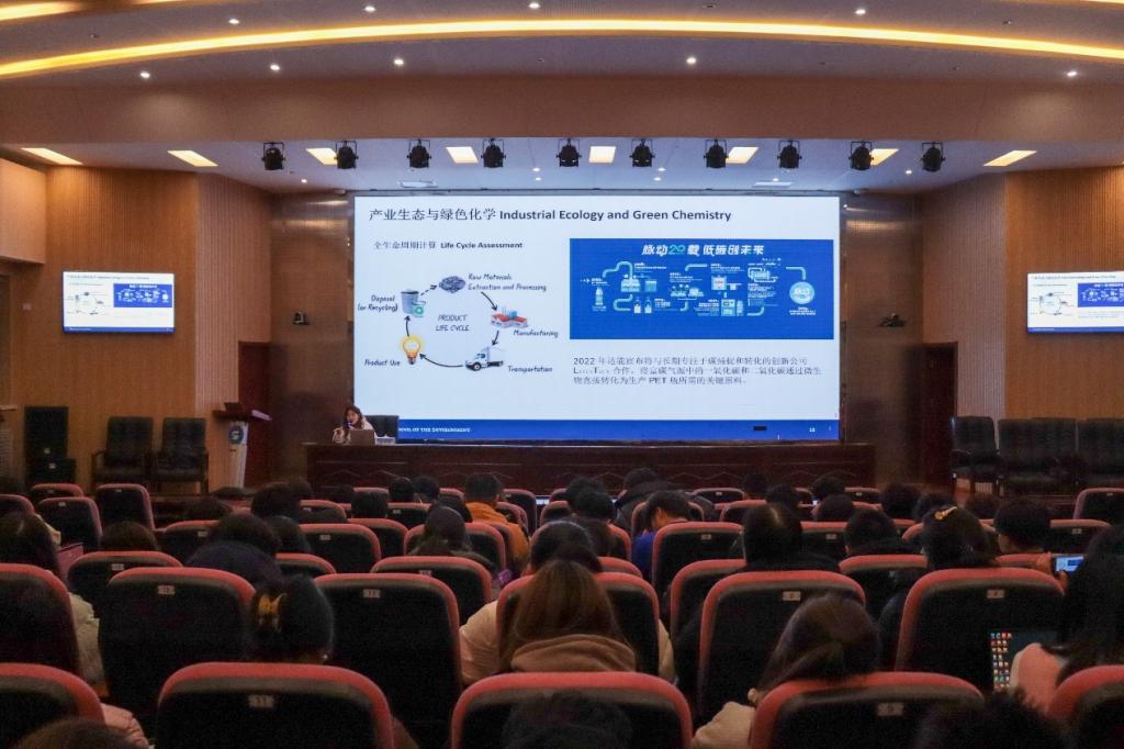 张铭雨首先分享了自己大学生活、留学申请等经历,介绍了硕士与博士不同的发展方向,帮助同学们对生涯规划有了更清晰的认知。随后,张铭雨分享了参加联合国第二十八届气候变化大会的经历,详细介绍耶鲁大学环境工程专业的课程设置以及研究热点,让同学对环境工程专业的应用实践有了更深的理解。