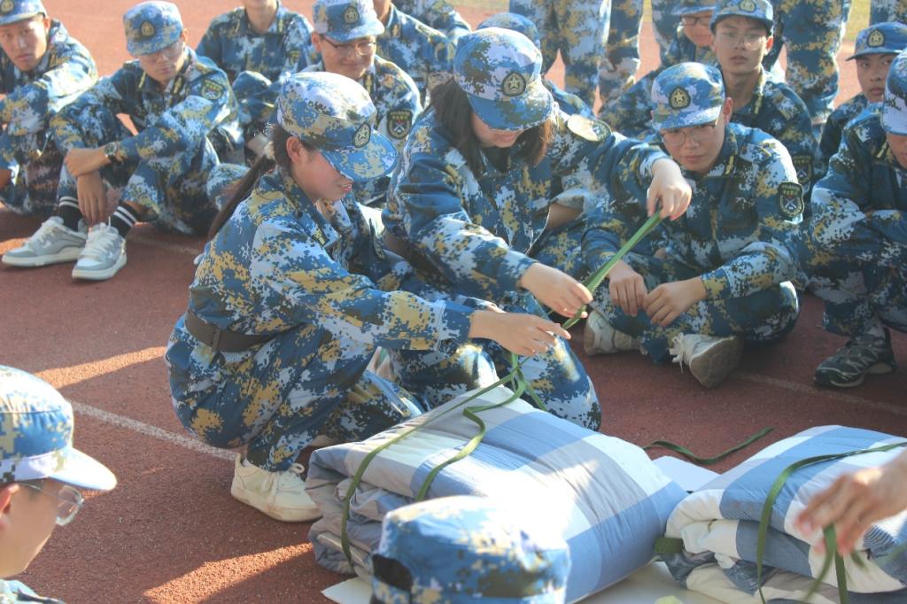 今日的训练重点聚焦于“分解式动作的精准掌握、敬礼脱帽戴帽的利落,以及打背包的规范”。教官们以一丝不苟的态度,细致入微地讲解了每一个动作的要领,并耐心地为每位同学纠正姿势,力求每一个细节都尽善尽美;同学们则以饱满的热情和严谨的态度,积极响应,全力以赴,将每一个动作都演绎得标准而有力。