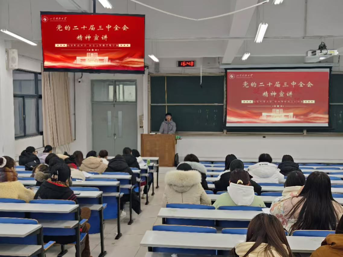为深入学习贯彻党的二十届三中全会精神和习近平总书记在全国教育大会上的重要讲话精神,切实发挥高校思想政治理论课主渠道、主阵地作用,10月10日—10月30日,成人在线 面向全体学生开展学习贯彻党的二十届三中全会精神集中宣讲活动,成人在线 党委副书记王建友、院团委书记张娜及全体辅导员分别给负责班级进行授课。
