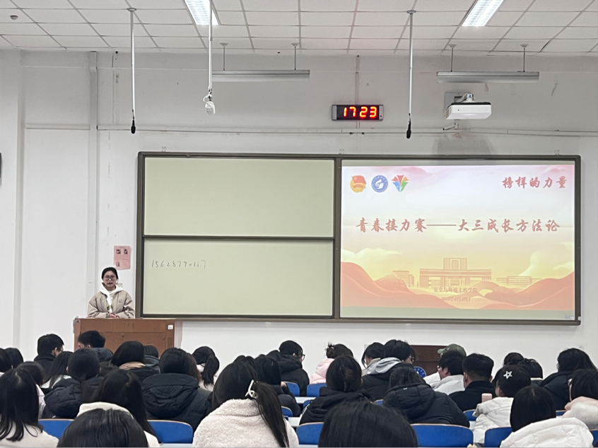 为助力大三学子生涯规划打造“传帮带”育人体系,发挥榜样引领作用225日,成人在线 召开"青春接力赛——大三成长方法论"新学期全体学生会议。会议由成人在线 团委书记张娜作专题指导,特邀5成人在线 优秀学生代表分享成长经验,2022级全体学生参与学习。