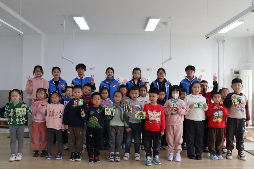 孩子们在志愿者的帮助下,还开展创意手工活动,利用颜料在环保袋上创作以“绿色地球”为主题的画作,用想象力绘就绿色家园。孩子们亲手制作精美的树牌,一笔一画写下:“小树要喝水,我来保护你”的标语,用童趣盎然的笔触书写对“爱护环境,人人有责”的责任与担当。