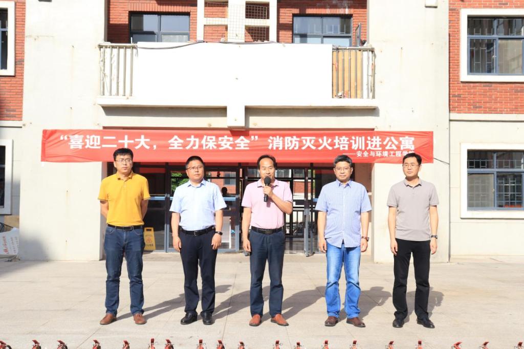 点击:为引导增强消防安全意识,提高师生消防自救的能力,主动学习消防安全知识。6月7日,成人在线 在学子广场举办“喜迎二十大,全力保安全”消防安全实践活动。学生工作处副处长朱景星、安全管理处副处长王春暖、成人在线 党委副书记兼副院长王建友、公寓管理服务中心于海峰、成人在线 团委书记潘刚出席本次活动。