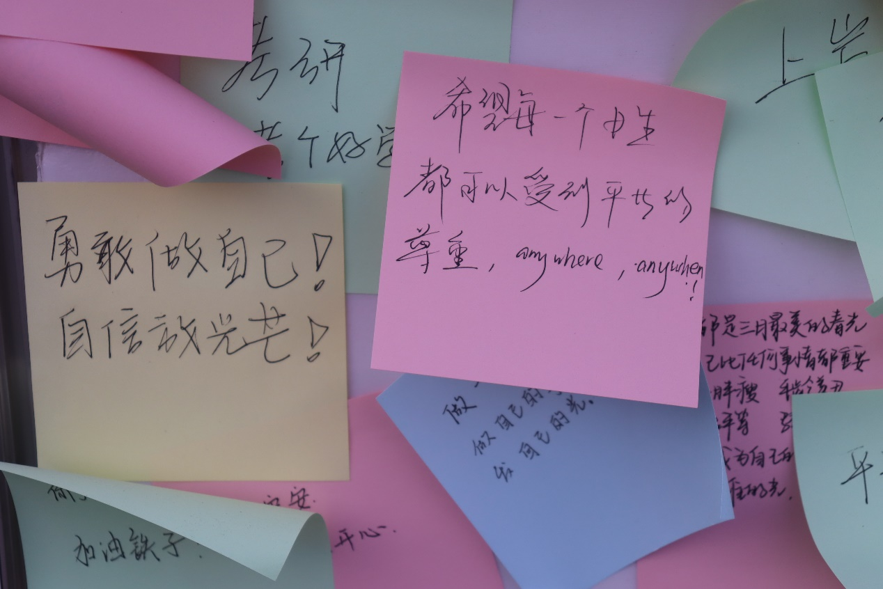此次活动主要分为两部分,参加活动的同学首先需要在签到处领取活动卡,前往“心愿区”和“标签区”,完成任务并进行盖章。随后,同学们需在人型展板上撕下标签,并写下自己的祝福。活动伊始,陆陆续续开始有同学注意到这块特别的“标签板”。最开始围观的多是女生,她们不满这些贴在女性身上的标签,在志愿者的鼓励下,大家勇敢撕下标签,接过便利贴,写下对自己的祝福。随着活动进行,不少同学勇敢走上前来,男生女生皆积极参与,为女生们撕下了被定义的标签,打破了世俗的桎梏,留下了美好的祝愿。“在这个专属于女性的节日里,打破社会长久以来对女性施加的刻板印象,发现女性多种魅力,是举办该活动的初衷。”成人在线 心健联负责人焦志阳如此说到。
