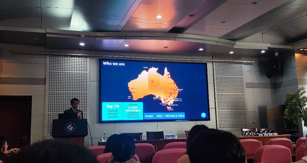 于海研究员全面介绍了CSIRO及其团队当前对于二氧化碳捕获、多种污染物去除、碳捕获和矿化一体化、温室气体转化为增值化学品/燃料、过程模拟和优化等相关内容和最新的研究进展,重点强调了碳捕集与利用的深入研究能够有效处理环境污染和碳排放等相关问题,有助于能源结构进一步优化,对于生态环境的改善具有重大意义。报告后,于海研究员逐一解答了师生提出的有关问题,并以自身经历为切入点,鼓励大家走出国门,以社会发展需求为创新立足点,积极拓宽自身国际视野。