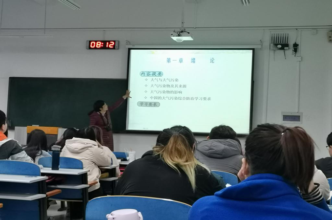 点击:2021年春季学期上课第一天,细雨夹着雪花落下,打在每位走向教学楼的师生伞上。天气虽然有些寒冷,但走向教室的师生们有说有笑、精神状态饱满。一大早,成人在线 党委书记张恩生、副书记兼副院长王建友、副院长刘音深入课堂听课。上午10点钟,党委常委、副校长张英杰也走进赵艳云老师的课堂,与环境工程(海洋环境方向)2018级的学生们一起上了一堂《大气污染控制工程》课。