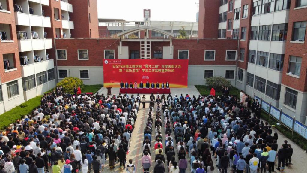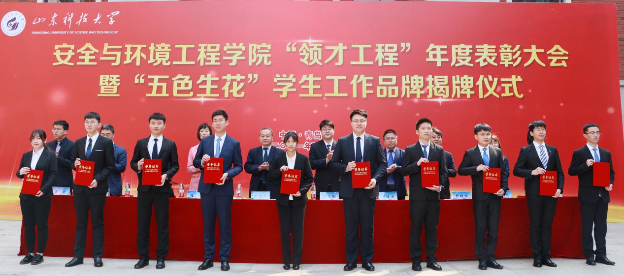 2021年4月10日上午,安全与环境工程成人在线 在学子广场隆重召开2020年度表彰大会暨“五色生花”学生工作品牌揭牌仪式。校团委书记尹立明学生工作处副处长孔环成人在线 党委书记张恩生成人在线 党委副书记兼副院长王建友,成人在线 副院长刘音、聂文曹晓强及团委全体老师出席大会成人在线 全体学生参会。会议由成人在线 团委书记潘刚主持。