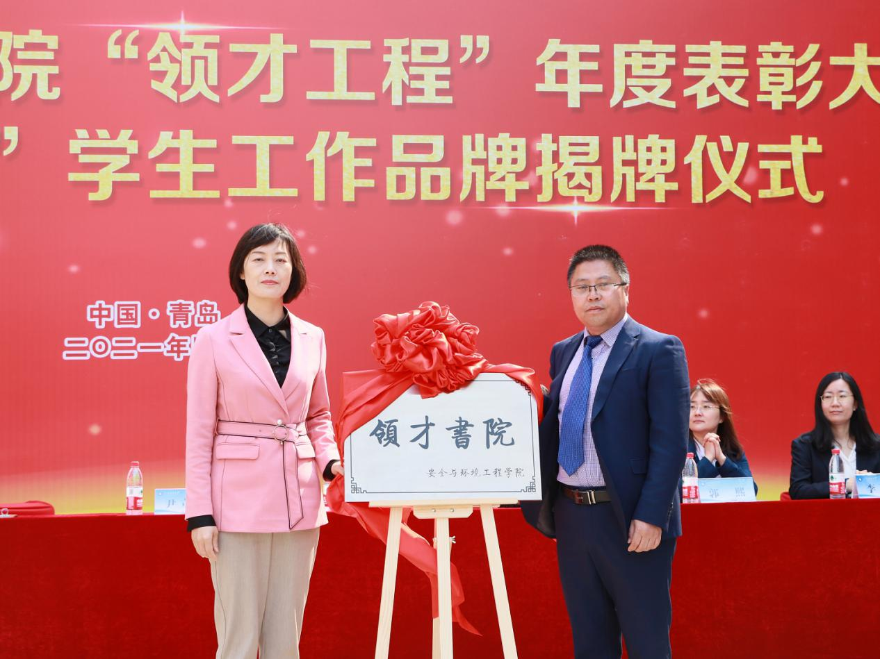 校团委书记尹立明、学生工作处副处长孔环成人在线 党委书记张恩生、党委副书记兼副院长王建友为“五色生花”学生工作品牌和“领才书院”一站式社区揭牌。