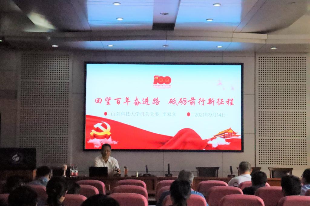点击:9月14日,成人在线 在J4-319召开全体教职工政治理论学习大会。学校机关党委书记李双立受邀为全体教职工作习近平总书记“七一”重要讲话宣讲报告,报告会由成人在线 党委书记张恩生主持。