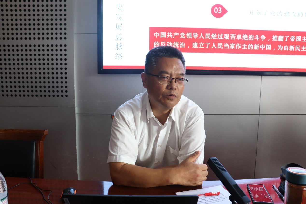 机关党委书记李双立带领大家学习了习近平总书记“七一”重要讲话。他表示,习近平总书记“七一”重要讲话,立足中国共产党百年华诞的重大时刻和“两个一百年”历史交汇的关键节点,回望光辉历史、擘画光明未来,是一篇马克思主义纲领性文献,是新时代中国共产党人不忘初心、牢记使命的政治宣言,是党团结带领人民以史为鉴、开创未来的行动指南。李双立对习近平总书记在讲话中的重要金句做了深刻解读,他强调,习近平总书记的“七一”重要讲话充满信心与斗志,见证情怀与担当,希望全体教职工能深入学习“七一”重要讲话精神,不忘初心,立足岗位,不断提升成人在线 教育教学水平。