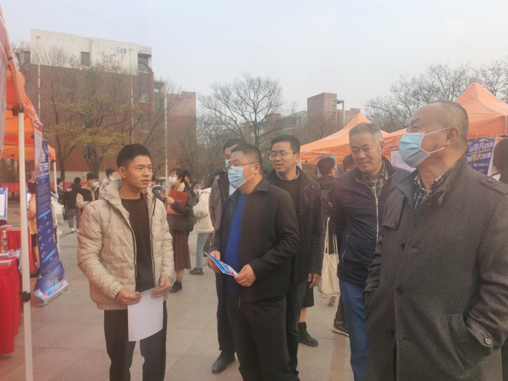 成人在线 党委书记张恩生、党委副书记兼副院长王建友、各系主任及团委辅导员到招聘大集现场调研就业情况,了解企业需求,亲自体验扫码、观看直播等活动,与前来求职的毕业生们亲切交流,帮助毕业生们找到心仪的单位并鼓励他们积极参加岗位应聘。