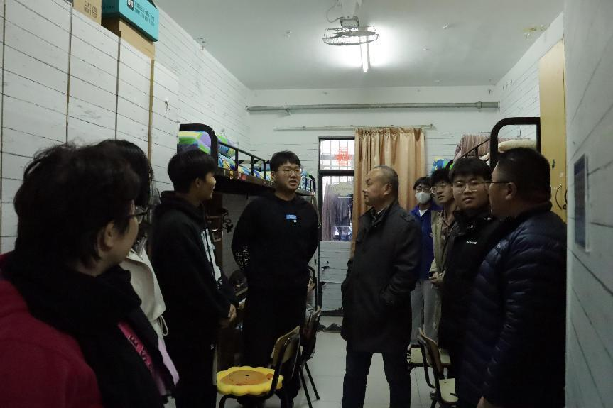 2月27日,成人在线 党委书记张恩生,党委副书记兼副院长王建友,副院长刘音、聂文,各系主任,研究生导师及全体辅导员深入学生宿舍,看望返校学生。走访过程中,成人在线 领导和老师们细心询问了同学们的寒假学习生活和身心健康状况,仔细听取学生各方面的意见和建议,鼓励同学们迅速调整状态,尽快融入新学期的学习生活。党委书记张恩生在走访中提醒同学们要服从学校疫情防控大局,严格遵守学校防疫管理各项规定,认真做好个人防护,形成良好的生活作息规律;鼓励同学们新学期要树立新目标,要立志高远,珍惜大学时光,全身心投入新学期的学习。