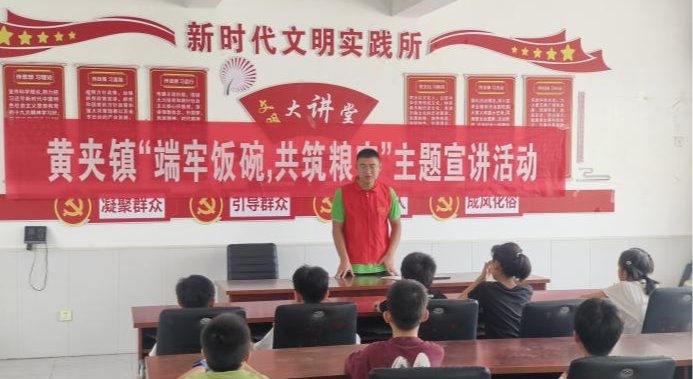 在黄夹镇黄河大集,浓浓的生活气息扑面而来。道路两旁蔬菜水果、服饰鞋袜等商品一应俱全。红糖果子、黄夹馒头,丰富的美食勾勒了文化内涵和历史积淀,反映了黄夹人民的生活方式与价值观念。“现在的生活是越来越好啦!”实践团队深入开展走访活动,与当地居民亲切交流,竭尽所能为他们提供知识宣传服务。队员们陈孙社区对当地学生进行粮食安全宣讲,培养孩子们勤俭节约习惯和居安思危意识,随后和孩子们来到活动室,阅读图书教学舞蹈,活动现场其乐融融。