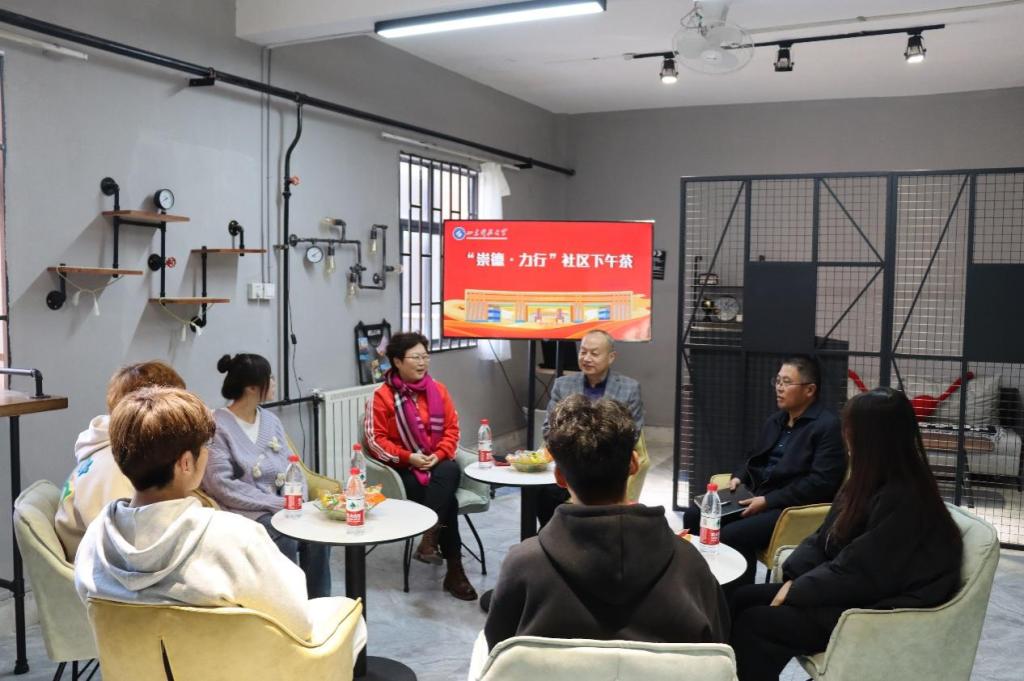 为深入学习贯彻党的二十大精神,深入推进“三全育人”,打造“一站式”社区党建和思想政治工作高地,11月10日,成人在线 在学生公寓C4“有情+”一站式学生社区——情安驿站举办“崇德·力行”社区下午茶活动。成人在线 党委书记张恩生、党委副书记兼副院长王建友、副院长刘音与学生代表参加活动。