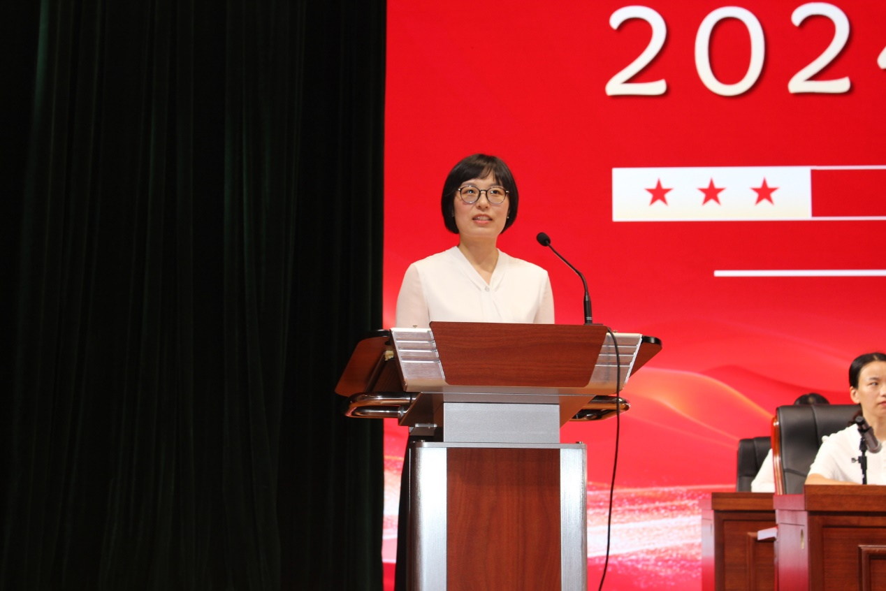 教师代表张文睿发言,她表示成人在线 有着硬核的专业设置和雄厚的师资力量,希望2024级新同学能够在未来逐步成长为“保命 护家园”的超级英雄。张文睿表示,大学是一个全新的“赛道”,同学们要做好跑马拉松的准备,想要到达终点就要保持耐心、独立思考、奋勇争先,愿同学们能够找到属于自己的征程。
