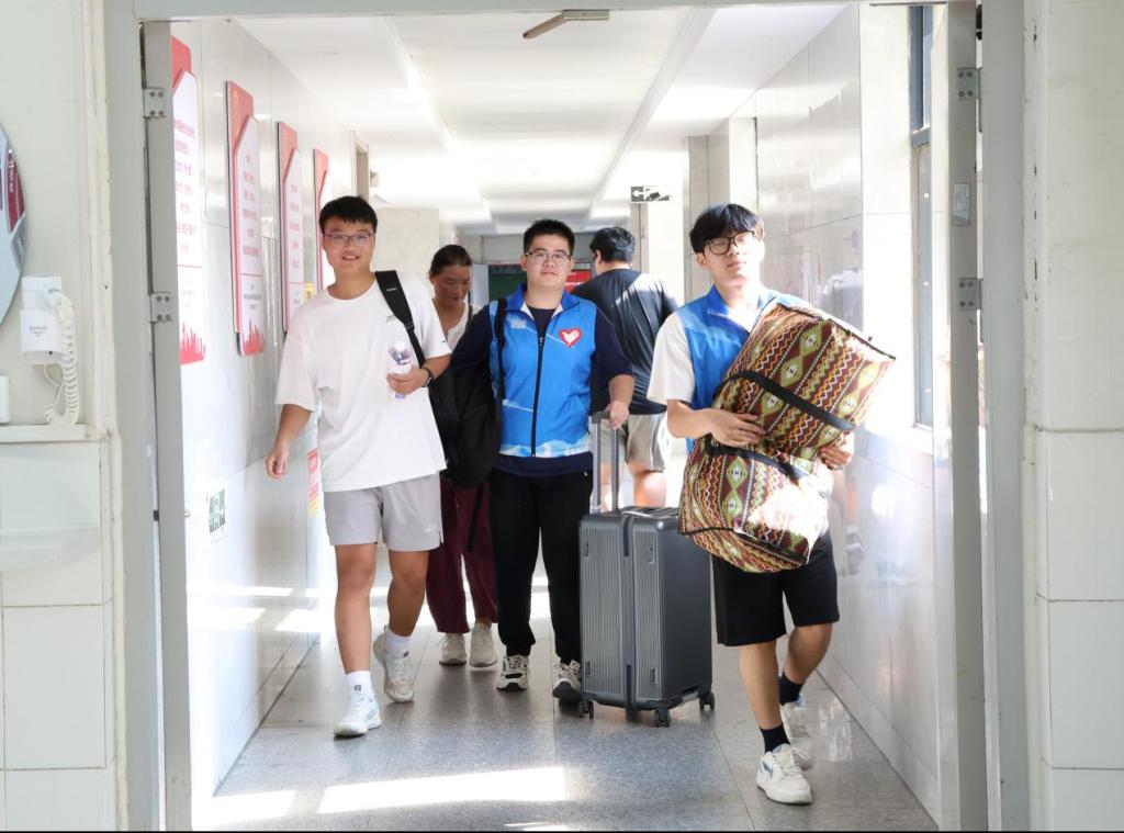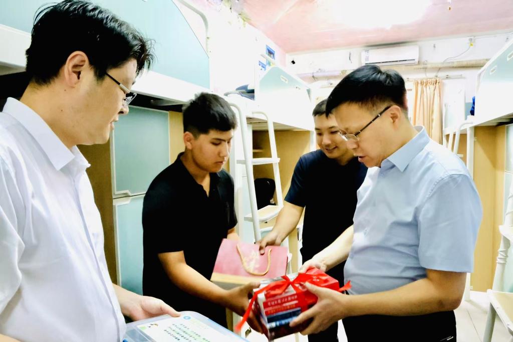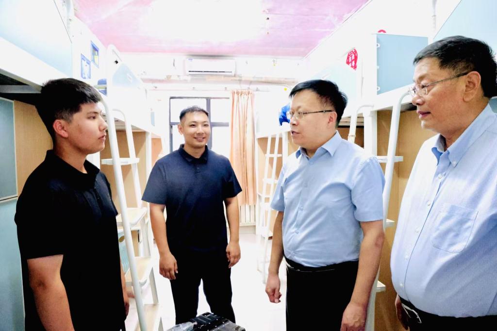 校党委书记王君松带队,党委常委、副校长诸葛福民、党委办公室(学校办公室)主任董桂刚、学生工作处(部)处(部)长尹立明陪同,深入学生公寓,走访看望成人在线 2025级新生及家长,并为新生送上了爱心大礼包。“欢迎你来到成人在线 !”“在宿舍住得还习惯吗?”“大学四年的生活马上就要开始了,对自己有什么期待?”,一句句亲切的问候让同学们倍感温暖,渐渐放下拘谨和羞涩。王君松表示,同学们站到了人生新的起点,要珍惜大学四年的学习时光,尽快适应大学生活,努力打基础、长本领、增才干,未来能够奔赴祖国各地,为中国式现代化建设贡献新时代青年的力量。