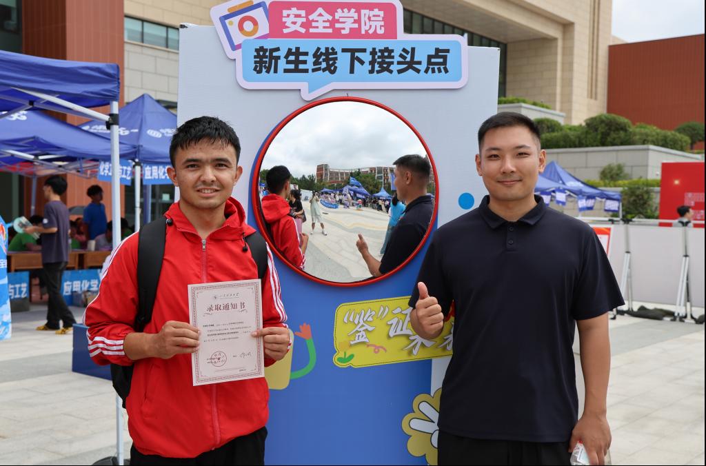 此次迎新成人在线 以“安启新程,环抱卫来”为主题,精心打造“安全”会客厅,巧妙将迎客松、走红毯、击鼓明志、镜正衣冠等充满仪式感与文化韵味的元素,深度融入成人在线 特色场景的构建中。成人在线 用心设置五大板块迎接新生:【鉴证未来】之处,新生于镜前正衣冠、留影像,定格初入大学的美好瞬间;【松畔寻名】活动,新生在迎客松旁寻找带有自己名字的钥匙扣,在寻觅中快速融入集体,归属感油然而生;【红毯逸步】新生踏上红地毯,开启逐梦通途,仪式感瞬间拉满;【明信寄情】板块,满是学长学姐饱含殷切期望的暖心寄语,传递着成人在线 的温情传承;【鼓韵震天】环节,激昂的鼓声阵阵响起,有力调动起现场热烈欢快的氛围。25级新生纷纷表示初进校园时的紧张情绪得以缓解,对接下来的大学生活充满期待。