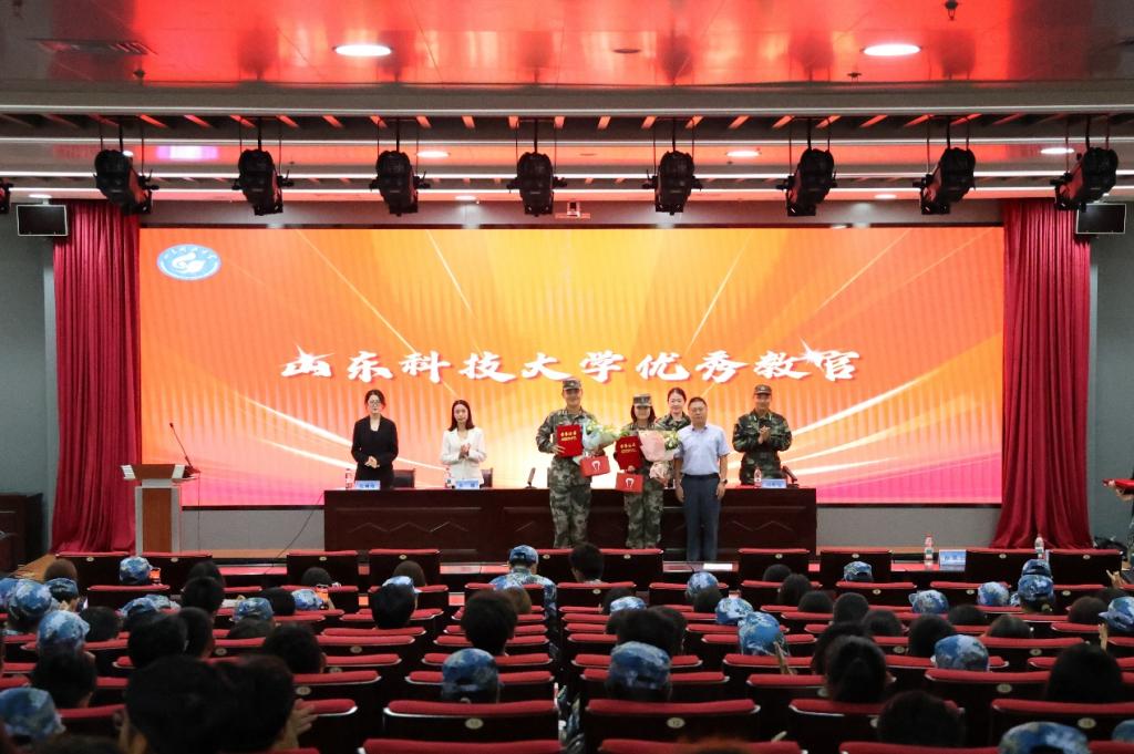 于喆宣读表彰决定,大会依次颁发了成人在线 优秀军训单位、优秀教导员、优秀军训班集体荣誉称号,及成人在线 优秀军训班集体、优秀军训学员等奖项,并向优秀教官献花致敬。
