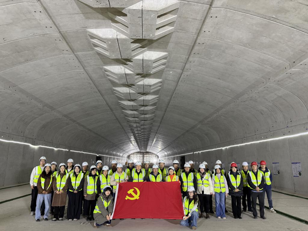 活动首站,中心组一行来到正在施工中的青岛地铁红树林站建设工程现场。工程负责人介绍了红树林装配式车站工程规划、施工进度、饰面高性能混凝土施工等创新性技术及安全保障措施,带领各位党员深入施工现场详细观摩车站基坑工程、主体结构施工工艺以及现场作业管理。大家重点考察了解项目建设中的安全风险管控体系,包括高空作业、临时用电、大型机械管理等关键环节的标准化流程与智能化监控手段。青岛地铁在复杂地质条件下攻坚克难,同时将安全管理贯穿每一个细节的实践,为安全工程学科的现场教学提供了鲜活教材。