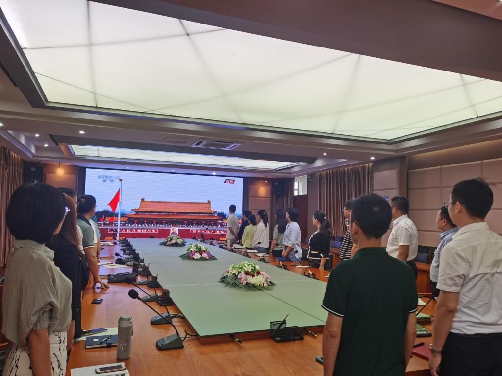 国歌响起,全体自觉起立,高唱国歌,神情庄重肃穆,为中国共产党建党百年这一盛事献上内心最真挚的祝福。中共中央总书记、国家主席、中央军委主席习近平发表重要讲话,习近平总书记总结了中国共产党团结带领中国人民铸就百年辉煌的壮阔历程,回顾了中国共产党矢志践行初心使命、筚路蓝缕奠基立业、创造辉煌、开辟未来的一百年,在场人员认真听取习近平总书记讲话,更加深刻认识到红色政权来之不易,新中国来之不易,中国特色社会主义来之不易。