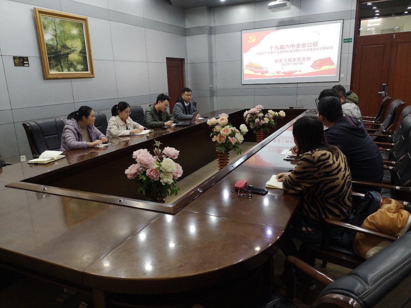 点击:为深入学习贯彻党的十九届六中全会精神, 11月26日,安全工程系党支部组织全体党员于J4-321开展了党的十九届六中全会精神的专题学习,会议由支部书记孙路路主持。