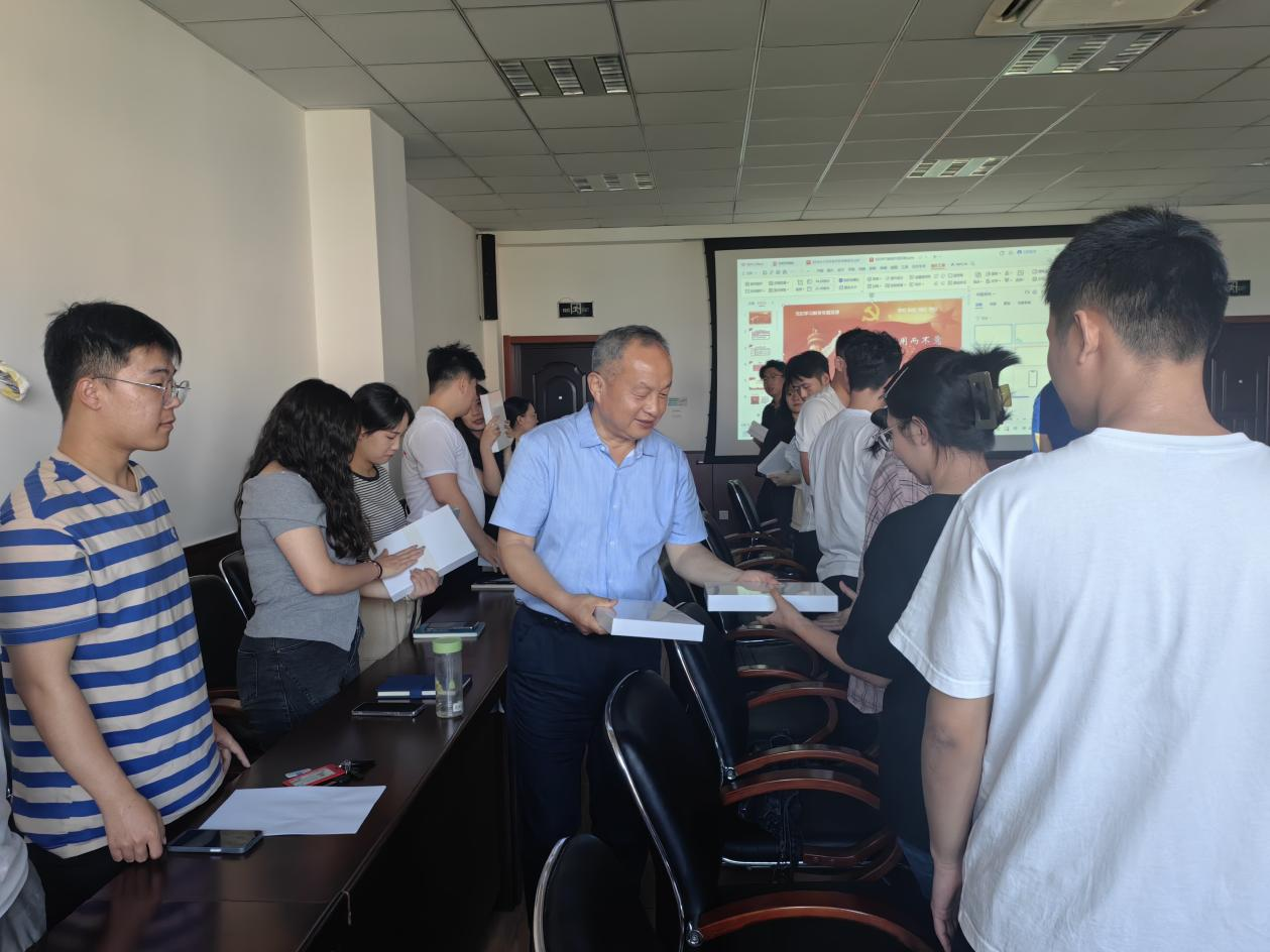 会后,张恩生为毕业生党员赠送了成人在线 定制纪念品。(李玉洁)