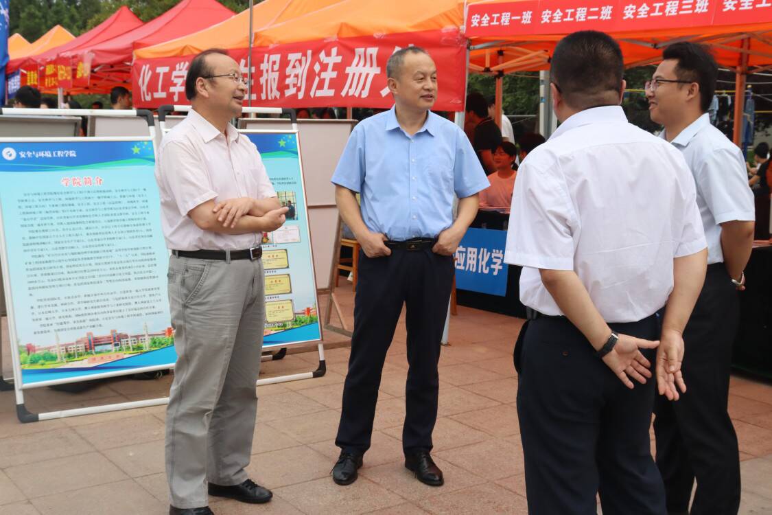 上午,校长姚庆国、副校长高建广莅临成人在线迎新现场,亲切询问新生报到人数、报到流程等事宜,并对成人在线 迎新工作给予了充分支持与肯定;成人在线 党委书记张恩生、院长程卫民、党委副书记兼副院长王建友亲临现场视察并指导工作,了解新生报到情况,全体辅导员老师在迎新现场落实具体工作安排,确保迎新工作顺利进行。