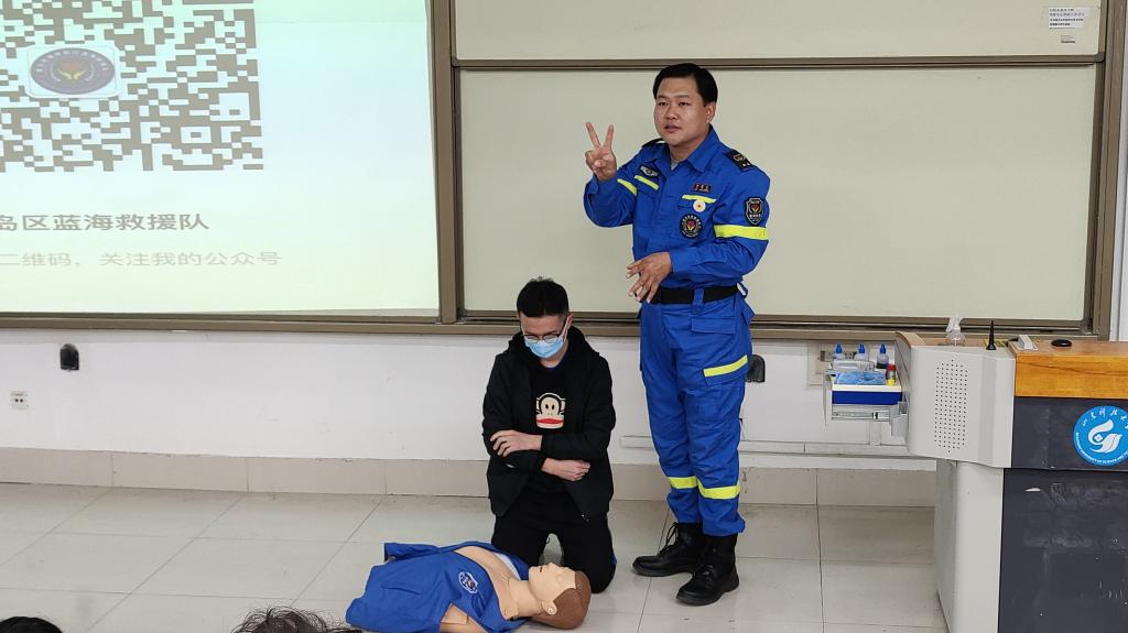 点击:为提高大学生安全认知能力、规避危险能力和逃生自救能力,掌握自救、互救、科学施救的方式,11月7日成人在线 安全协会邀请西海岸新区红十字蓝海救援队开展安全应急教育培训。