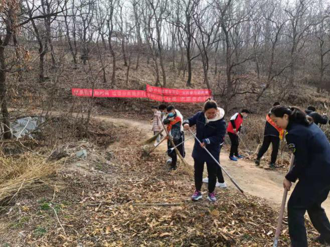 随后,志愿服务队领队将打扫工作进行了有序分工,以避免工作的盲目性,提高工作的效率与质量。初春的青岛气温虽低,但大家工作的热情却丝毫不受寒冷天气的影响,铲除垃圾、清理落叶,志愿者们都表现出不怕脏、不怕累的精神,每个人都干劲十足。经过大家的共同努力,居委会林区及道路焕然一新。