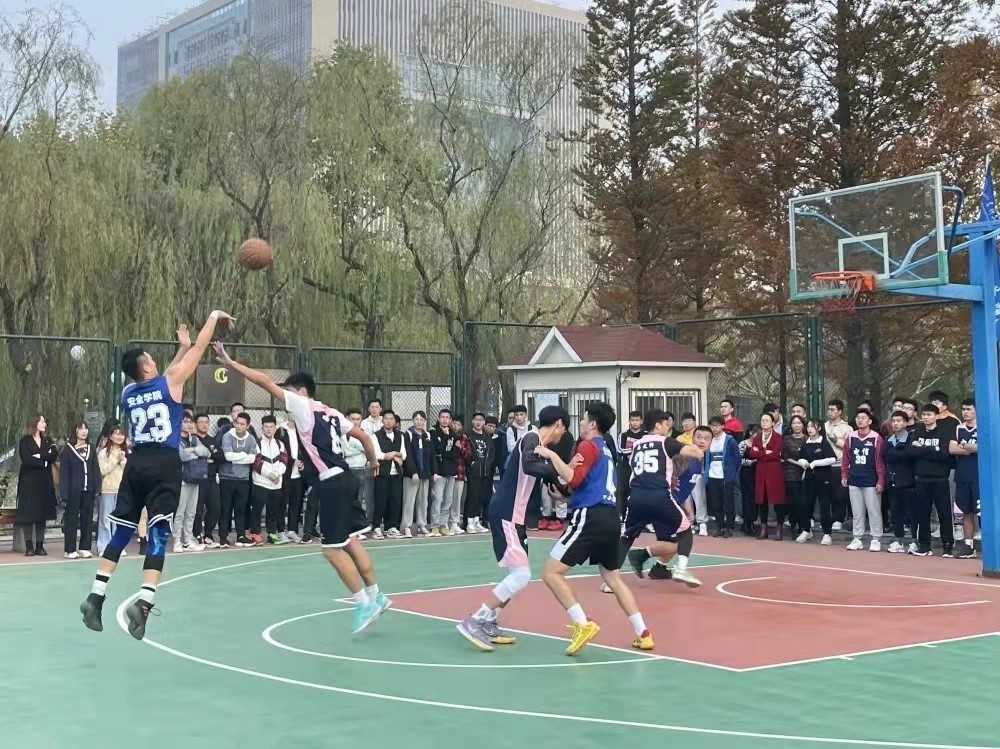 决赛由电信成人在线 对阵成人在线 。裁判吹响哨声后,现场的气氛急剧攀升,在场的同学们欢声高呼,情绪高涨,为自己喜欢的队伍加油助威。比赛一开始,电信代表队凭借8号杨知虎出色的手感以及队友之间的配合,把比分拉大到8:1,安全代表队及时调整进攻策略,凭借防守强度的提升以及23号韩淮安的出色发挥,一度把比分追平甚至反超了比分。