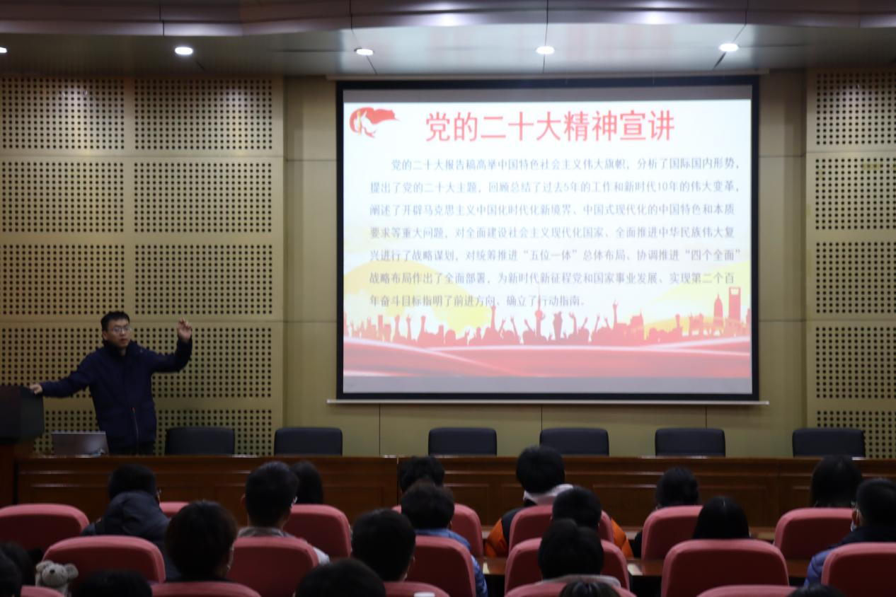 点击:为深入学习贯彻党的二十大精神,加强成人在线 学生组织建设,落实成人在线 学生组织工作,提升成人在线 工作质量和水平。12月3日,成人在线 于J4-101召开以“学习贯彻党的二十大精神”为主题的全体学生干部大会。由院团委书记潘刚主讲,成人在线 全体学生干部参会。