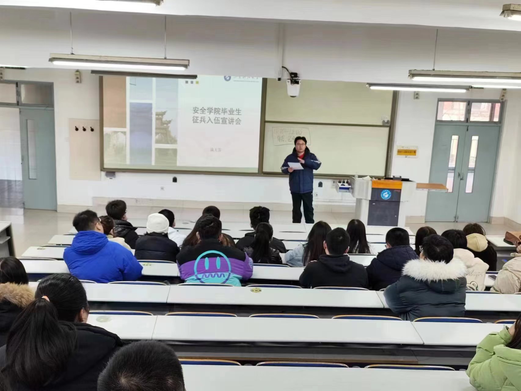 会议开始,满天雷参照2022年的征兵情况对男兵、女兵本年度报名时间区段和报名方式进行了讲解,同时对参军入伍的基本条件及要求进行了重点强调,包括年龄要求、基本身体条件(身高、体重、视力、色觉、血压等)以及基本政治条件等。此外,他还对参军入伍程序进行了详细介绍,提醒同学们要按照程序依法进行兵役登记,并在兵役登记及时进行应征报名,以防出现程序缺漏。