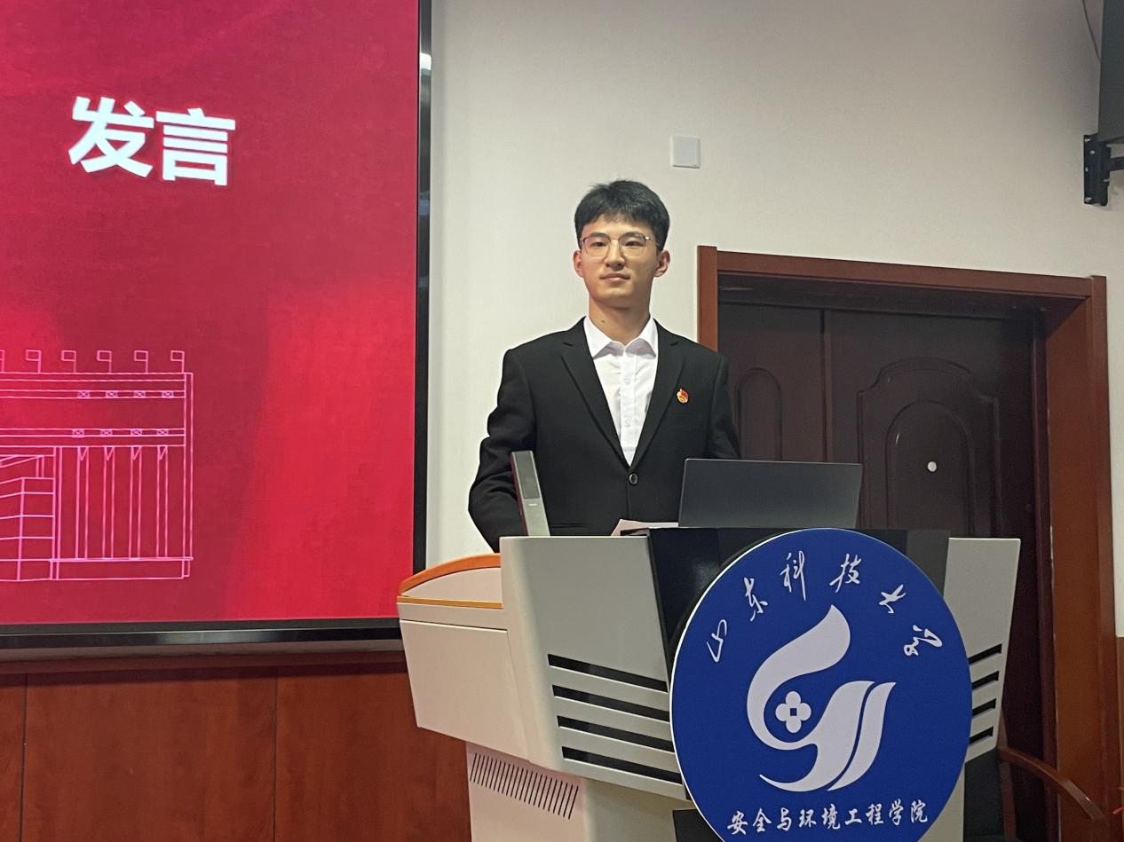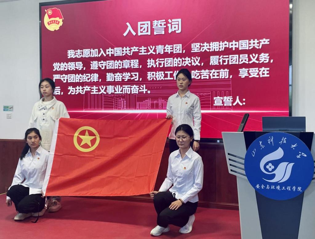 环境工程2023级1班王正贤同学作为领誓人,带领全体新团员面向团旗庄严宣誓,铿锵誓言响彻会场,彰显了共青团员矢志不渝听党话、跟党走的坚定信念。新团员代表、安全工程专业2024级2班贾悦妍表示:“加入中国共产主义青年团不仅是一份荣誉,更是一份责任。我们将以优秀前辈为榜样,在专业学习与实践中锤炼本领。”优秀团员代表、环境工程专业2022级4班王晓辉则结合自身经历,鼓励新团员在科技创新与社会服务中发挥青年力量,让奋斗成为青春最亮丽的底色。