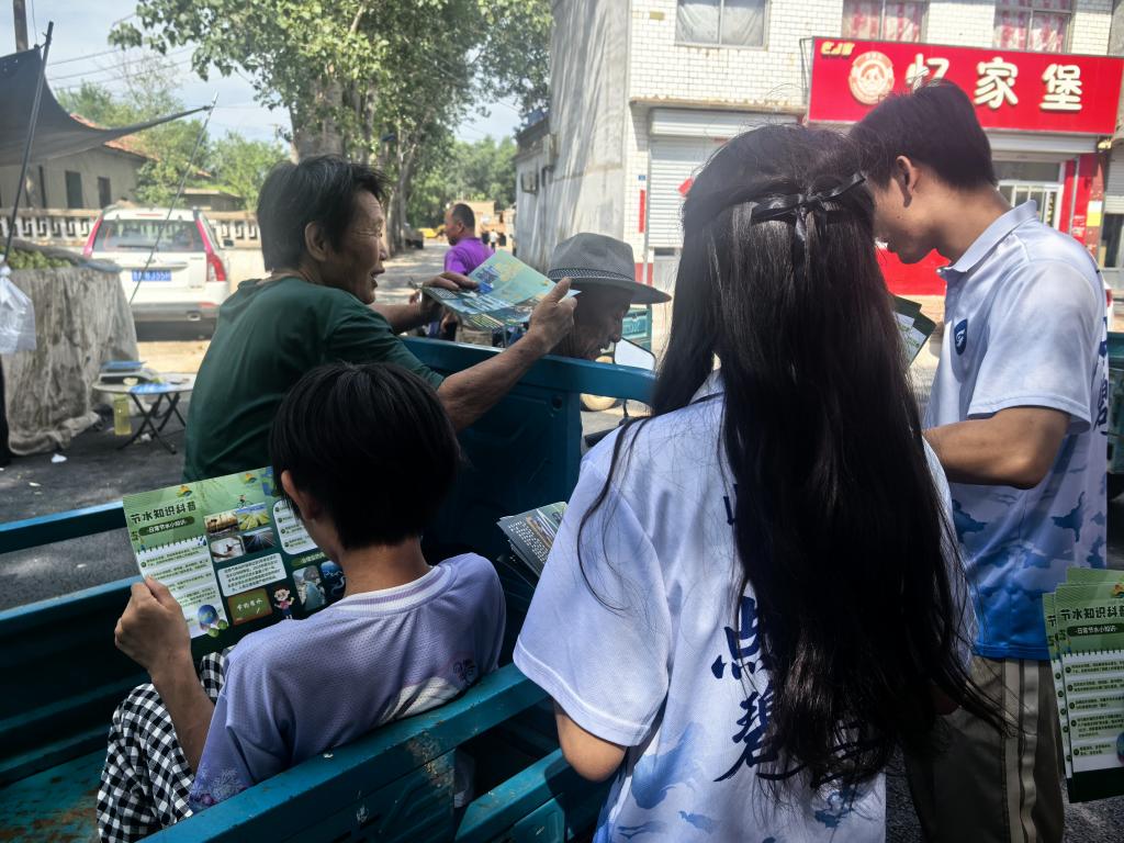 走村入户,把脉水情。实践团奔赴新市镇多个村镇,通过“访谈+调研+科普”的多元形式,为乡镇居民送去一场别开生面的环保“公开课”。在王家社区、大庄村、新市村等地,团队成员深入调研家庭生活用水情况,科普水资源节约、保护相关知识,并向居民有针对性提出健康用水建议。
