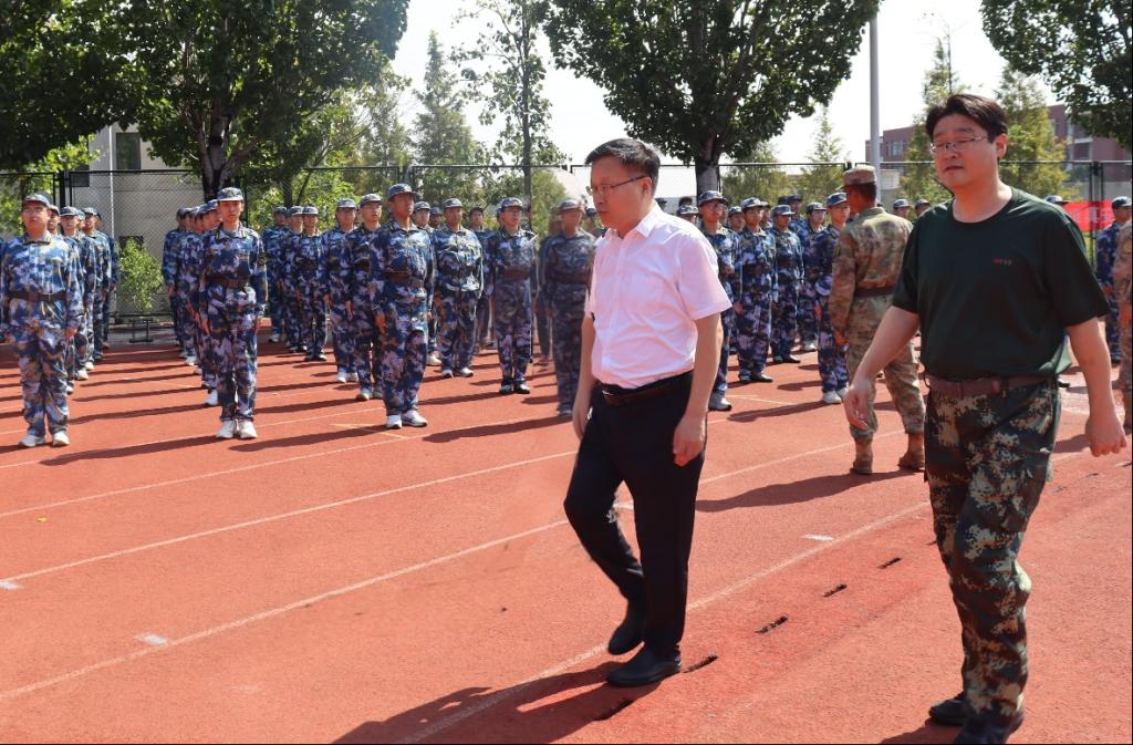 点击:9月16日上午,成人在线 2025级本科生新生在高地操场列队集结,步履铿锵、斗志昂扬。校党委书记王君松带队亲临军训现场指导检查工作,党委办公室(学校办公室)主任董桂刚、学生工作处(部)处(部)长尹立明陪同视察。