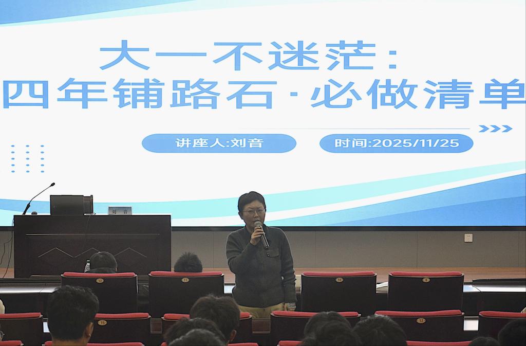 刘音从学业基础、专业探索、能力提升、心态调整和目标设立几个方面与同学们进行分享交流,并对2025级全体本科生提出四点建议:一要将记笔记培养成一种本能,随时随地做好记录,夯实学习基础;二要秉持“身体是革命的本钱”的理念,高度重视体育锻炼的重要性,主动参与各类体育活动,保持良好的身心状态;三要主动加强与老师的沟通交流,通过积极互动拉近师生距离、增进师生情谊,及时解决学习生活中的困惑;四要深刻认识学业发展的重要性,养成良好的学习习惯,针对个人特点进行生涯规划,从而明确学习目标,全面提升学习成效。