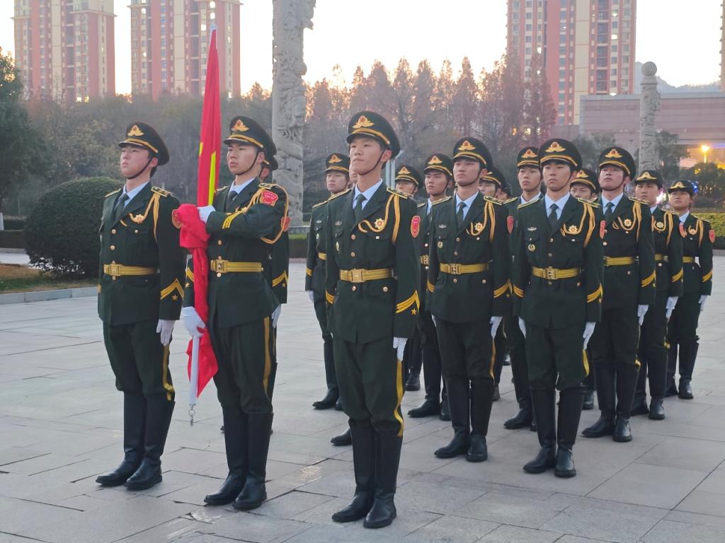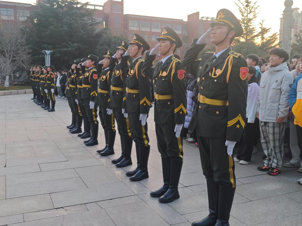 点击:为凝聚青春力量、引导青年学子勇担民族复兴使命,12月1日,成人在线 在泰山广场举行升旗仪式。学院党委副书记兼副院长王建友、团委书记张娜、全体辅导员老师及全体学生参加本次升旗仪式。