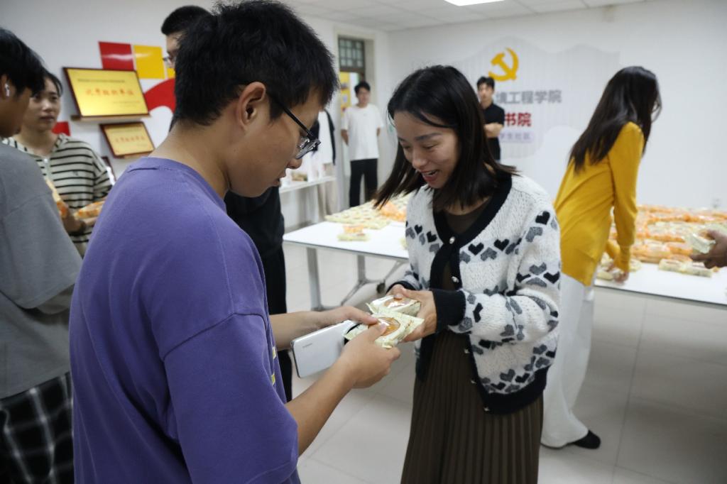 成人在线 党委书记张恩生,党委副书记兼副院长王建友,团委书记张娜及全体辅导员一同走进领才书院,亲手将定制的月饼送到每一位新生手中。这份承载着成人在线 深厚情谊的礼物,不仅传递着节日的祝福,更凝聚着师长们对学子们的殷切关怀。