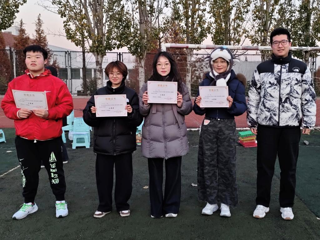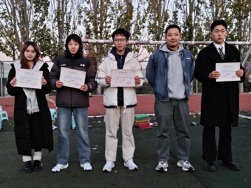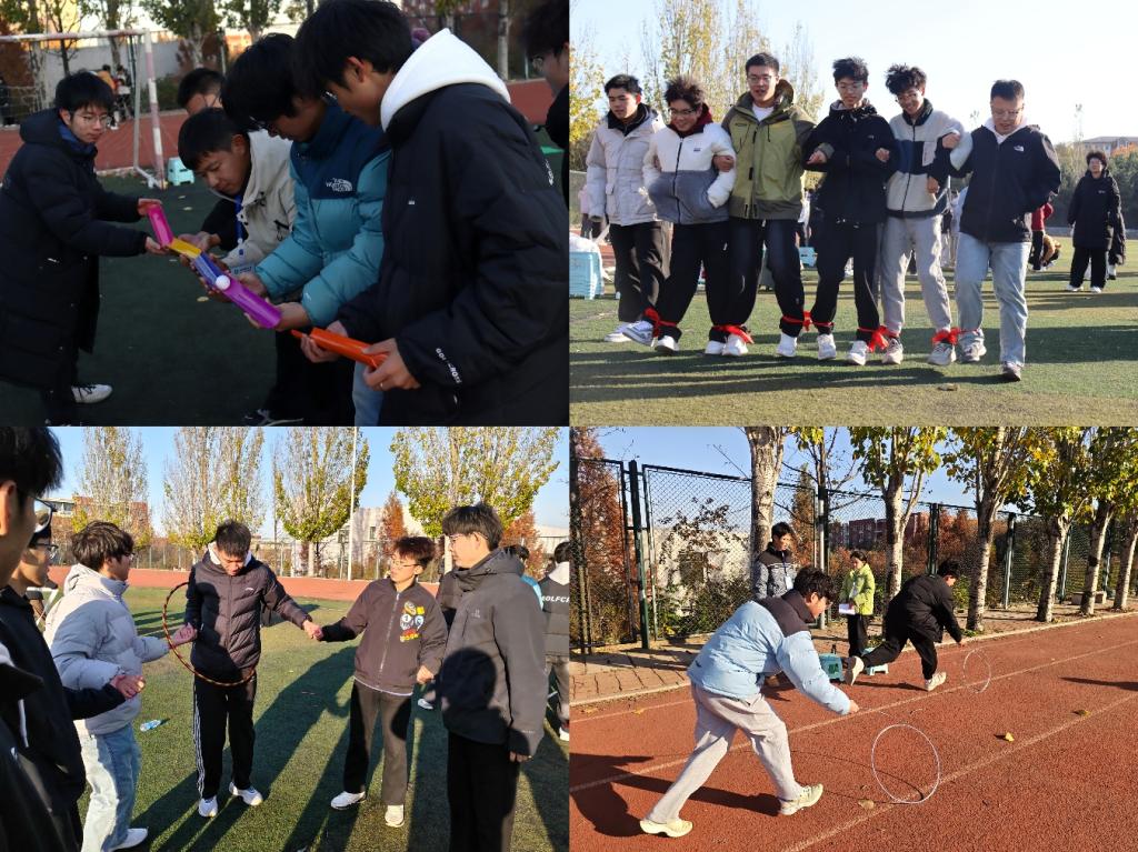 本次活动设置了“情同手足”“旋转小陀螺”“沙包投掷盘”“速度与激情”“珠行万里”“一圈到底”“滚铁环”七大趣味项目,兼顾竞技性与娱乐性。在“旋转小陀螺”“速度与激情”“一圈到底”项目中,队员们明确分工、默契接力,用高效配合展现团队协作的强大力量;“沙包投掷盘”“珠行万里”赛道上,大家精准把控节奏、步调一致,在协作中快速突破关卡,斩获佳绩;“情同手足”“滚铁环”赛场内,选手们灵活应变、互帮互助,在欢声笑语中携手冲向终点。整场比赛趣味与竞争交织,欢乐与活力相融,同学们在轻松愉悦的氛围中相互交流、彼此扶持,充分诠释了团结友爱的体育精神。赛后,刘雨池、居硕亲自为获奖队伍颁发荣誉证书,并高度评价了所有参赛选手在比赛中展现出的卓越团队精神。